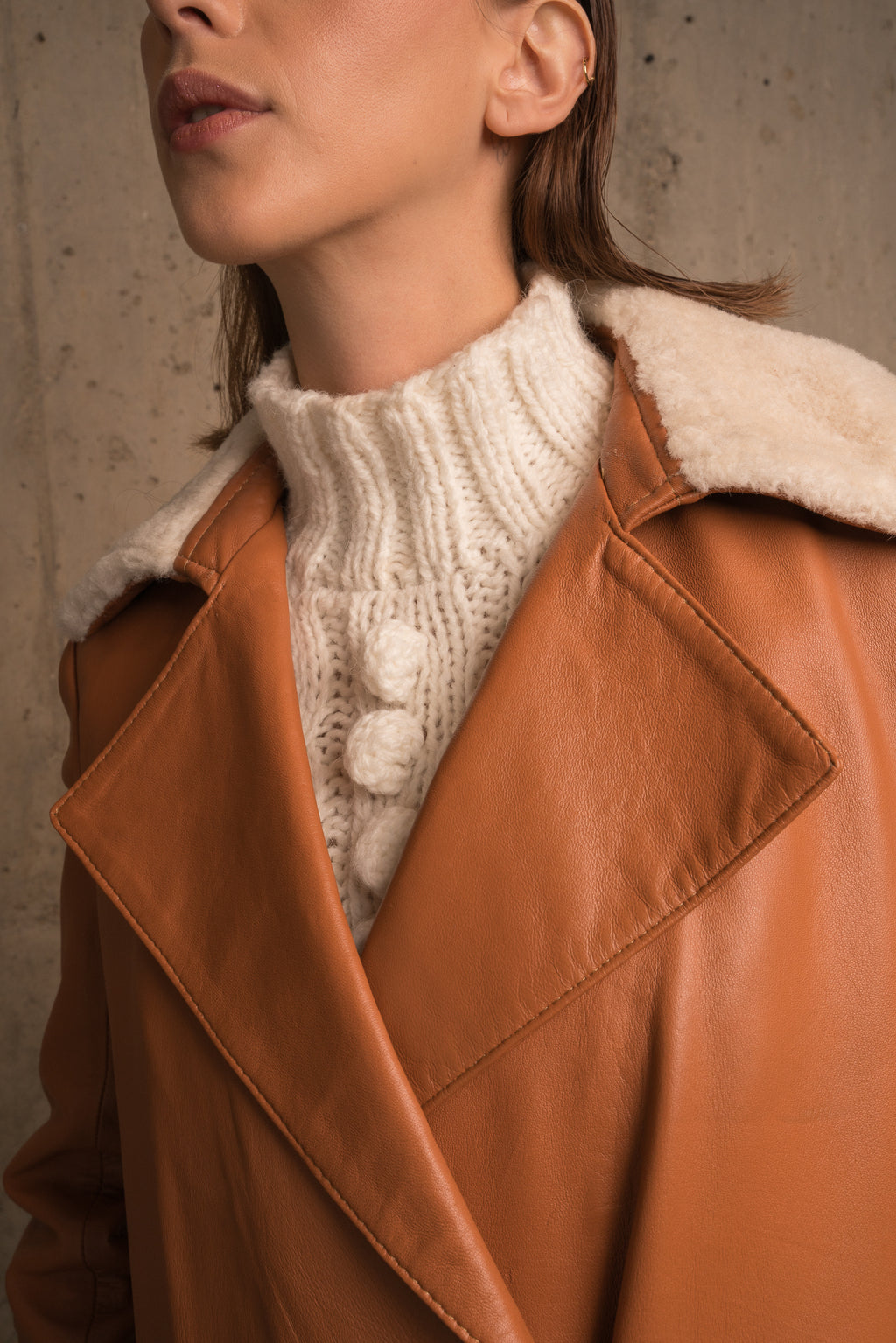 Elegancia con Calidez: El cuello camisero en borrego aporta elegancia a tu atuendo y el color te dará una prenda neutra para toda ocasión. Te permitirá enfrentar con gracia los cambios de clima.